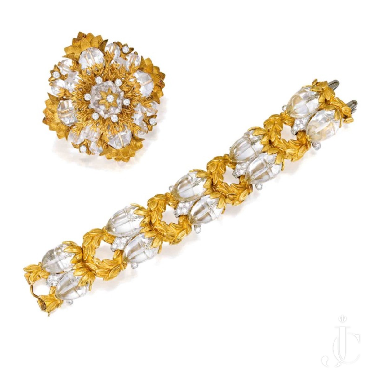 1970's David Webb 18KYG Rock Crystal & Diamond Bracelet & Pin/Pendant