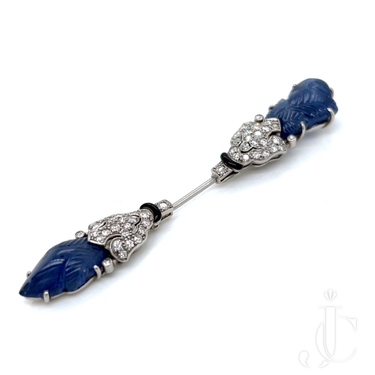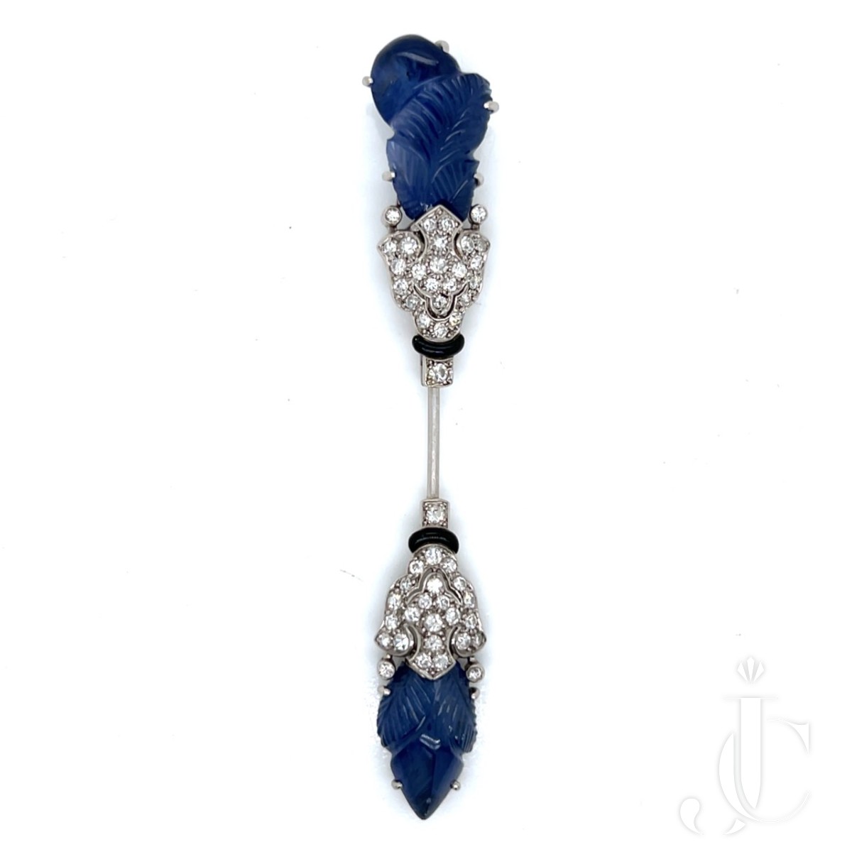 Art Deco Platinum Carved Sapphire & Diamond Pin/Brooch